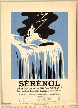 Les dessins abordent le thème de la peur, source d’anxiété, d’émotivité pour promouvoir le Sérénol sensé redonner sérénité et équilibre neuro-végétatif.