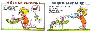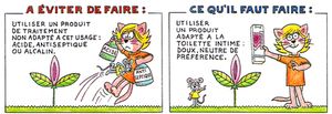 Ce dépliant pour un gel le toilette intime Féminic° propose 8 pages illustrées par Barberousse avec des conseils sur ce qu’il faut faire et ne pas faire pour réaliser une toilette intime.